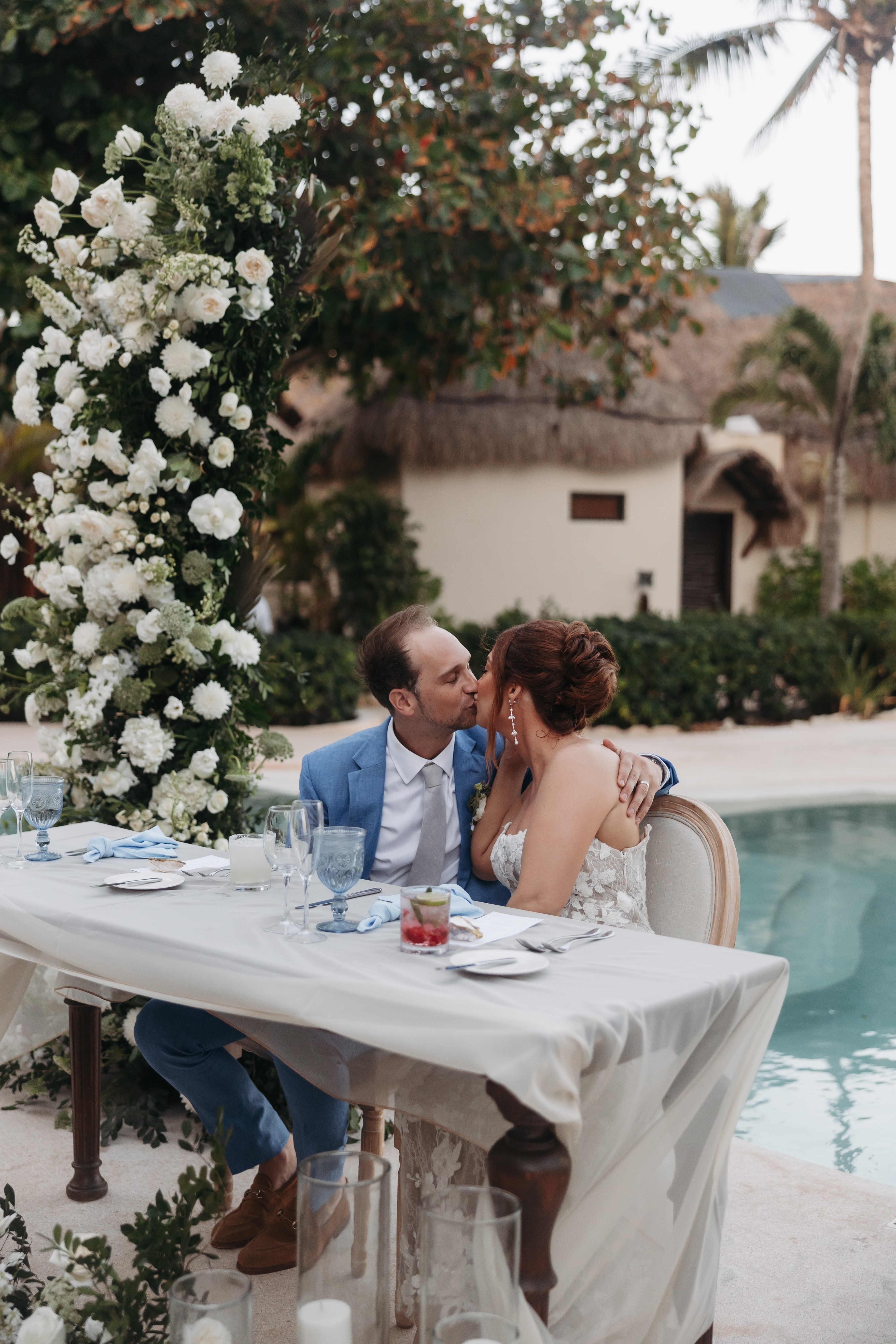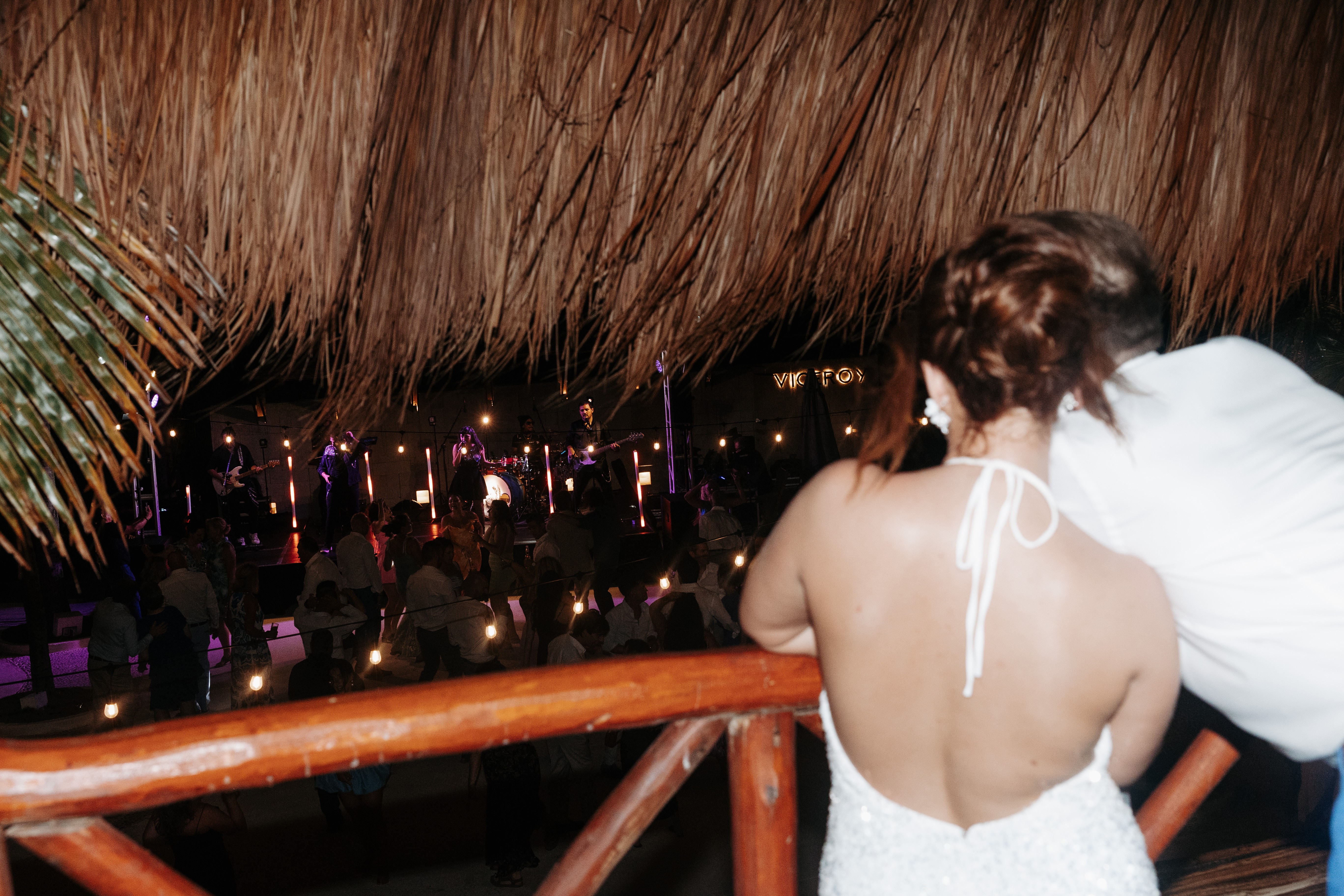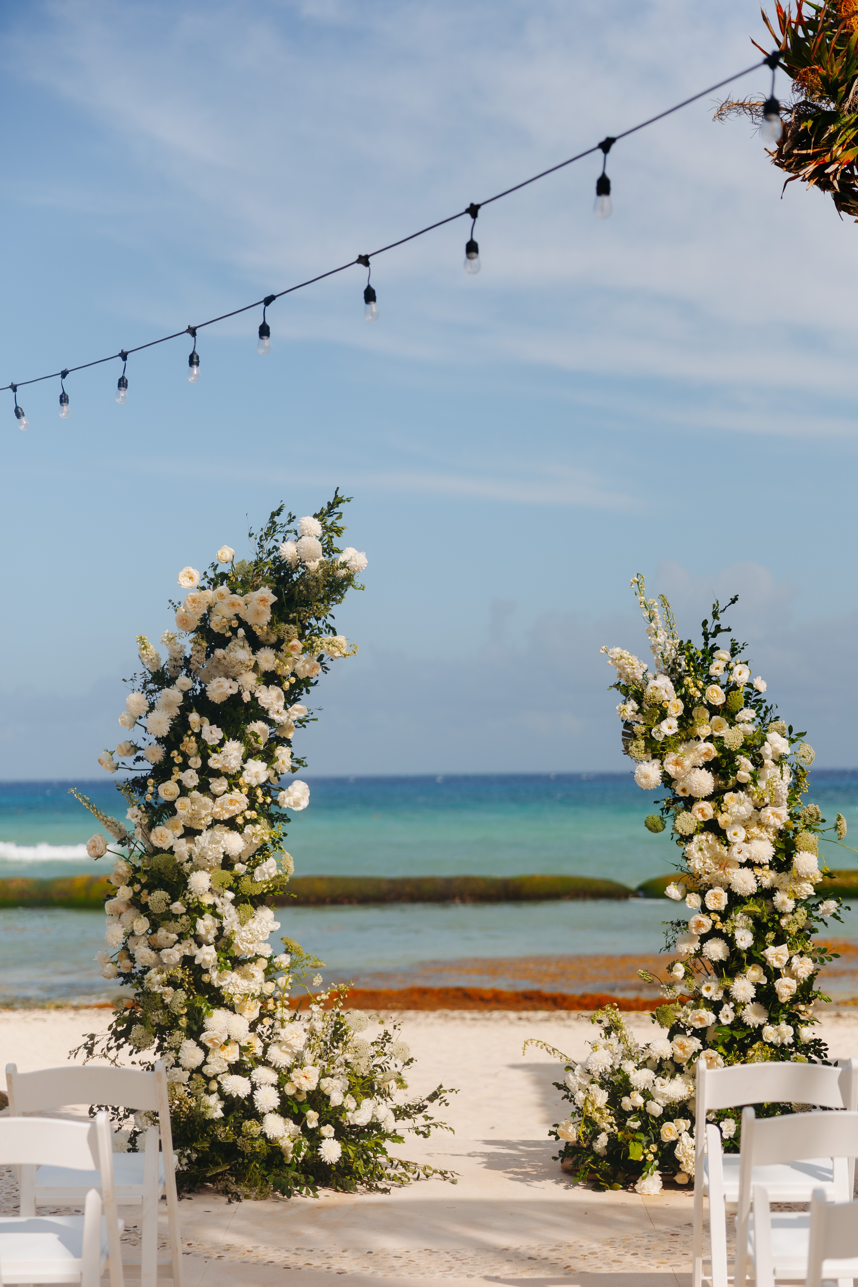 This destination wedding at a Viceroy resort in Mexico features a coastal setting with ocean views, open-air ceremony space, and a modern resort backdrop. The location provides a mix of beachfront and architectural elements that support a full day of wedding coverage in one place.